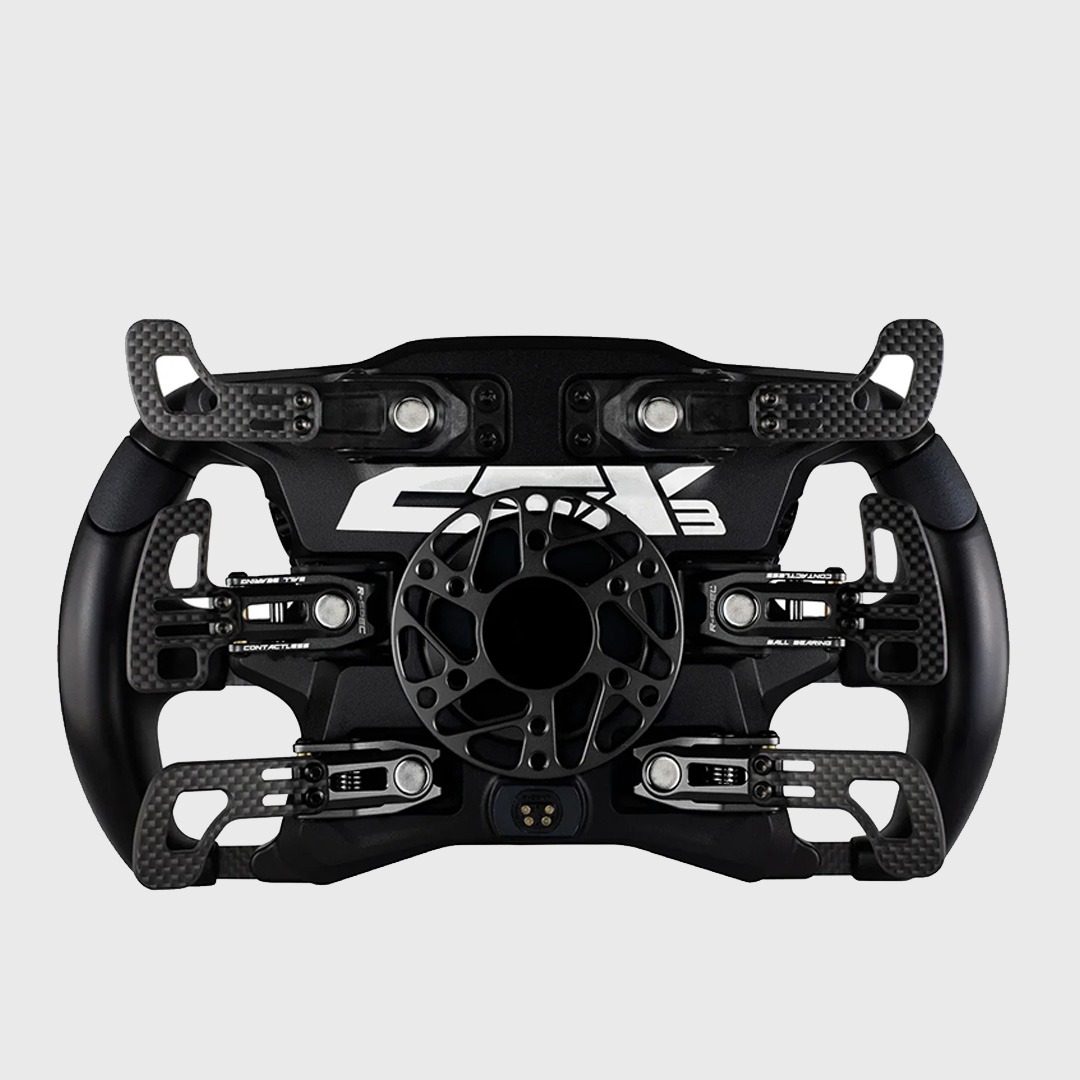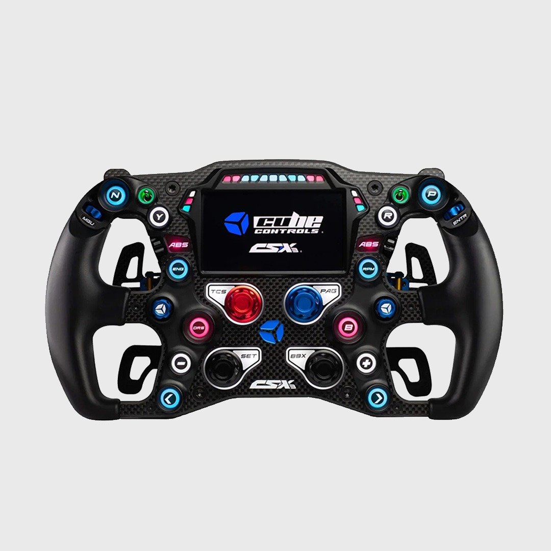 El volante más querido está de regreso con su tercera versión, el Cube Controls CSX-3. Diseñado para ampliar los límites de la experiencia premium y satisfacer las expectativas de un verdadero corredor, incluye conexión Q-conn, botones LED RGB personalizables, pantalla LCD táctil a todo color y electrónica completamente renovada. Cuenta con una placa frontal de fibra de carbono pura, cuerpo principal, perillas y joystick de aluminio CNC, y ofrece un juego de paletas adicional opcional.